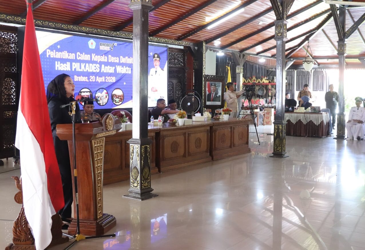 “Desa memiliki posisi yang sangat strategis dalam pembangunan nasional. Oleh karena itu, Kepala Desa harus mampu menjalankan tugas dengan penuh tanggung jawab dan dedikasi,” ucap Bupati Brebes saat pelantikan di Pendopo Brebes, Senin (20/4/2026).