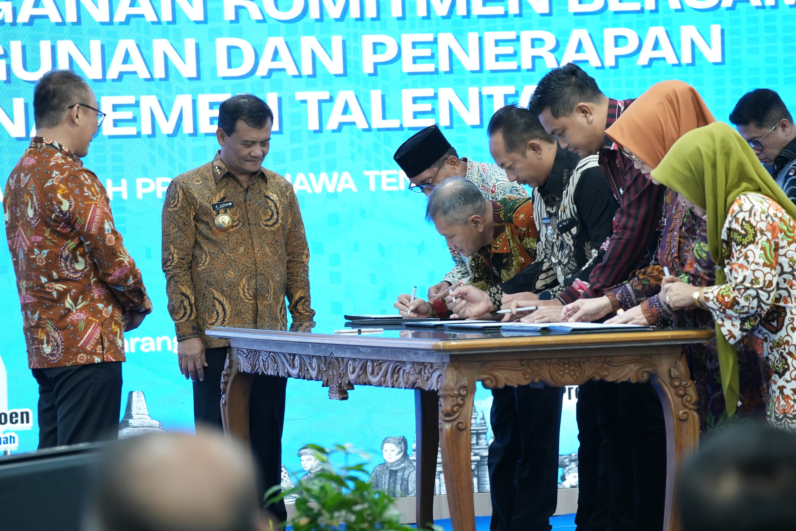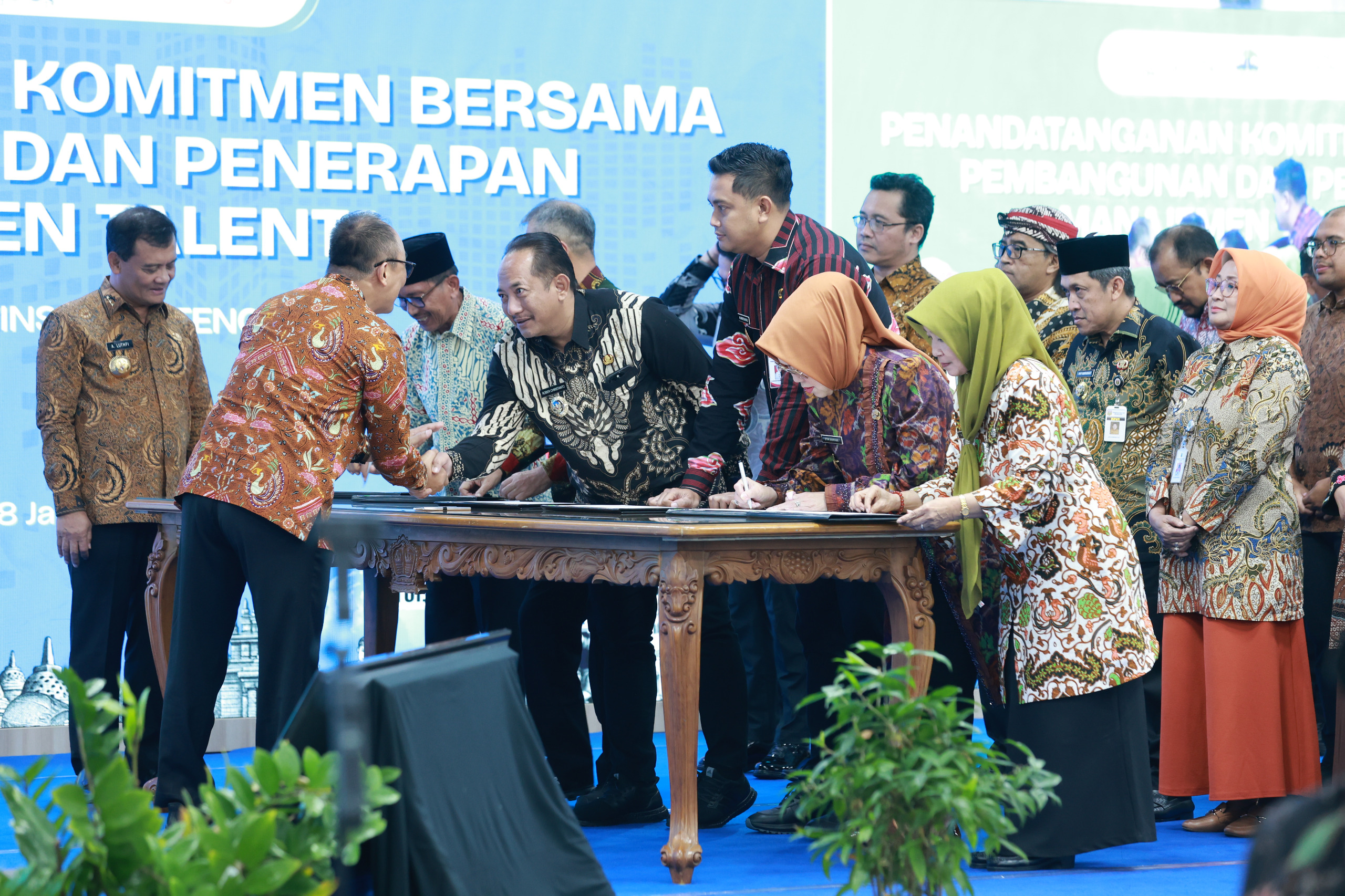 Bupati Karanganyar H. Rober Christanto, S.E., M.M., menandatangani komitmen pembangunan dan penerapan Manajemen Talenta Aparatur Sipil Negara (ASN) bersama Gubernur Jawa Tengah serta para kepala daerah se-Jawa Tengah.