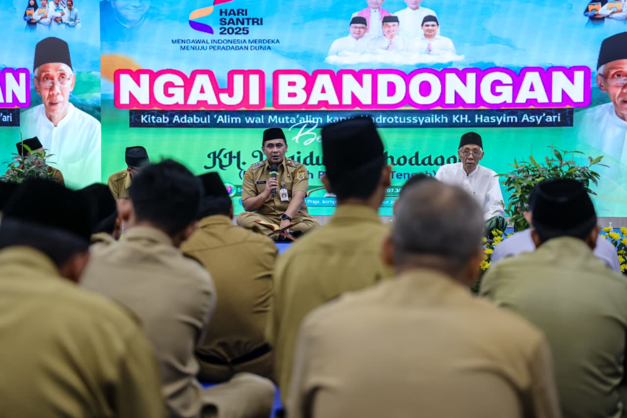 “Para santri dan stakeholder yang ada di pesantren, maka mari kita jawab itu. Bukan dengan protes. Akan tetapi bagaimana tradisi-tradisi di pondok pesantren yang kita amalkan itu pesannya bisa keluar,” katanya, usai mengikuti kegiatan Ngaji Bandongan, Kitab Adabul ‘Alim wal Muta’alim, di Gedung Gradhika Bhakti Praja, Kompleks Kantor Gubernur Jawa Tengah, Senin, 20 Oktober 2025.