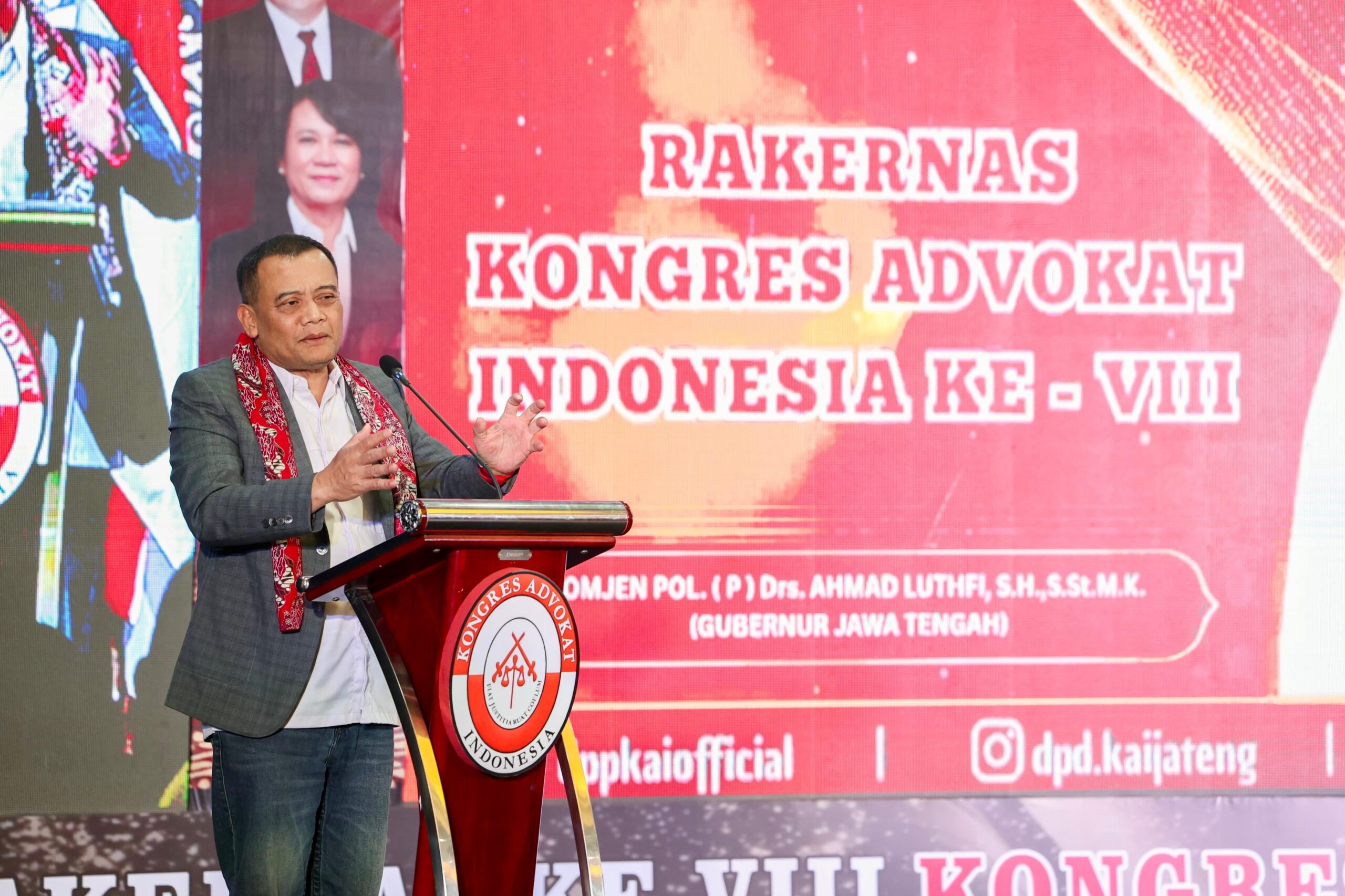 Gubernur Jawa Tengah Ahmad Luthfi menegaskan, terciptanya keamanan, ketertiban, dan kepastian hukum menjadi prasyarat mutlak dalam membangun wilayah yang maju dan sejahtera. Hal itu ia sampaikan saat menghadiri Rapat Kerja Nasional (Rakernas) ke-VIII Kongres Advokat Indonesia (KAI) di Metro Park View Hotel, Kota Semarang, Jumat (17/4/2026).