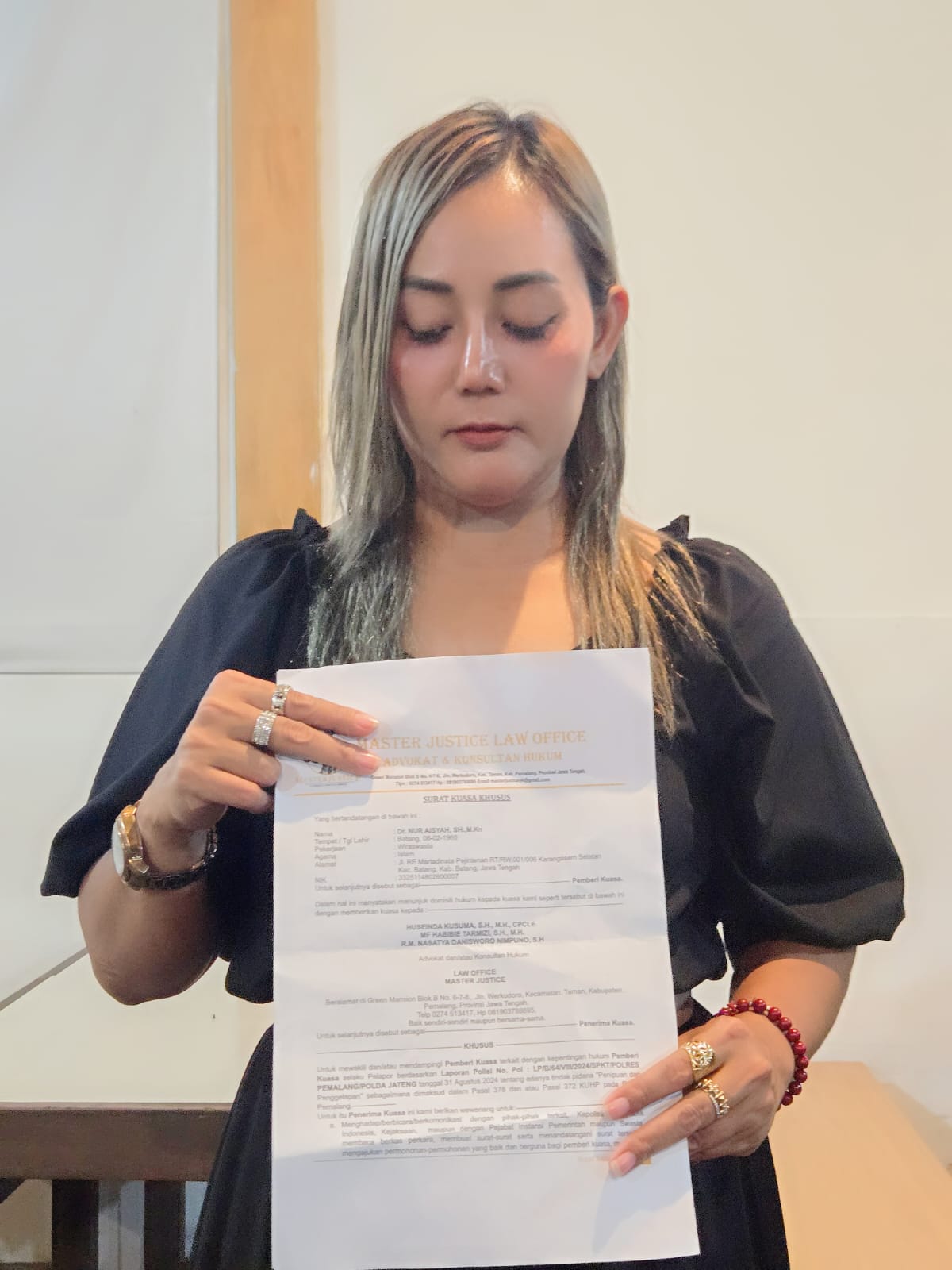 Didampingi kuasa hukumnya dari Master Justice Law Office, kedatangan warga Karangasem Selatan, Kecamatan Batang, Kabupaten Batang itu untuk mencari keadilan atas perkara dugaan penipuan yang telah dilaporkannya sejak 2023.