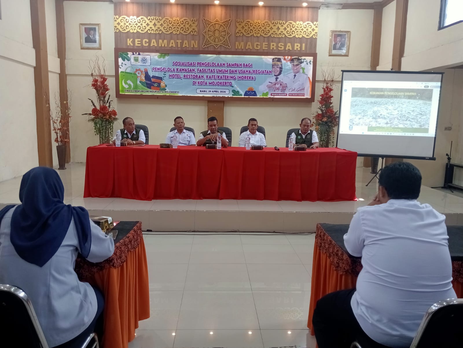 Mojokerto, petenews.co.id – Pemerintah Kota Mojokerto melalui Dinas Lingkungan Hidup (DLH) terus mendorong langkah konkret dalam menghadapi persoalan sampah yang kian mendesak. Salah satunya dengan menggelar sosialisasi pengelolaan sampah yang menyasar pelaku usaha dan pengelola kawasan, Rabu (29/4/2026), di Aula Kecamatan Magersari.
