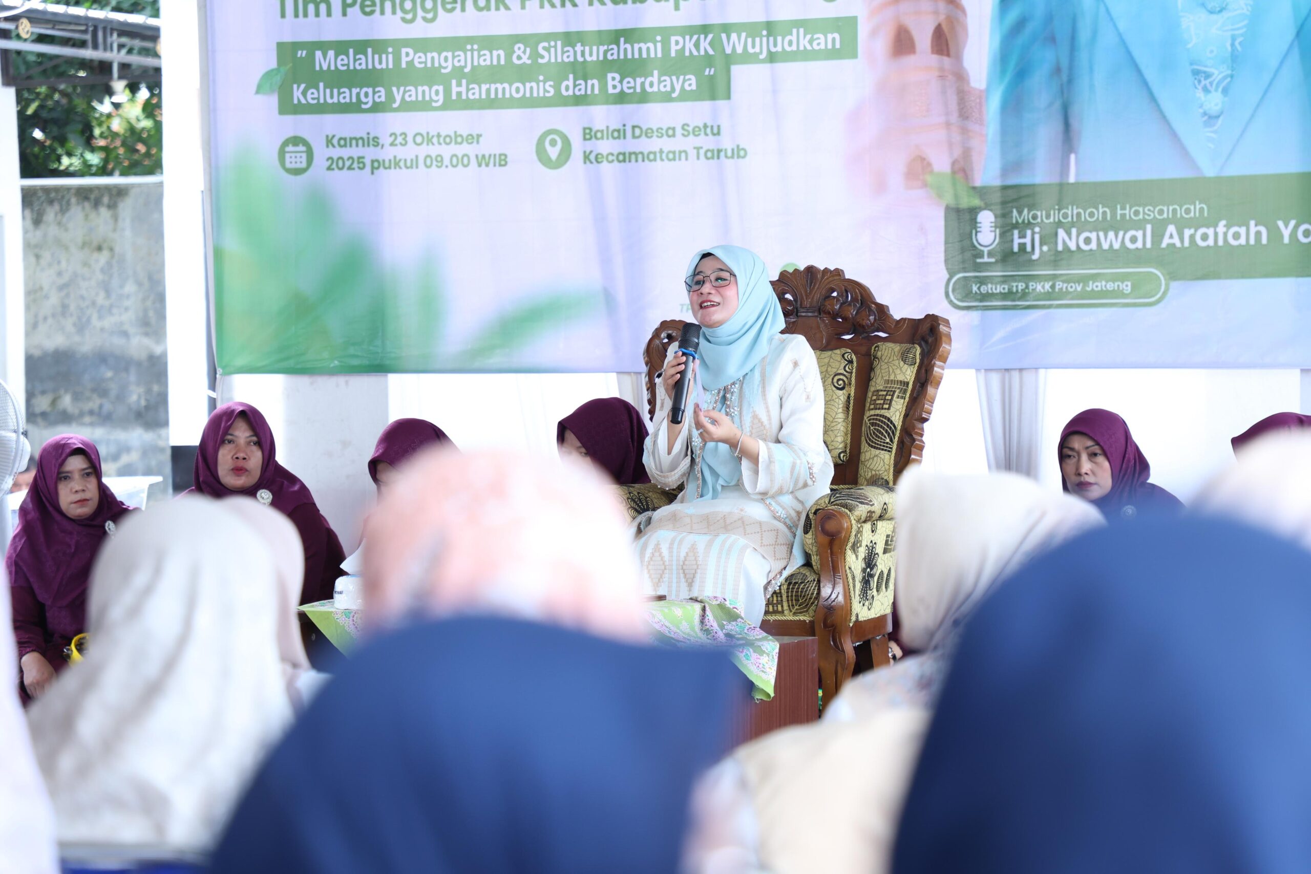 Hal tersebut diungkapkan Ketua TP PKK Provinsi Jateng, Nawal Arafah Yasin, seusai memberikan Mauidhoh Hasanah dalam kegiatan Silaturahmi TP PKK Kabupaten Tegal, di Balai Desa Setu, Kecamatan Tarub, Kamis (23/10/2025).