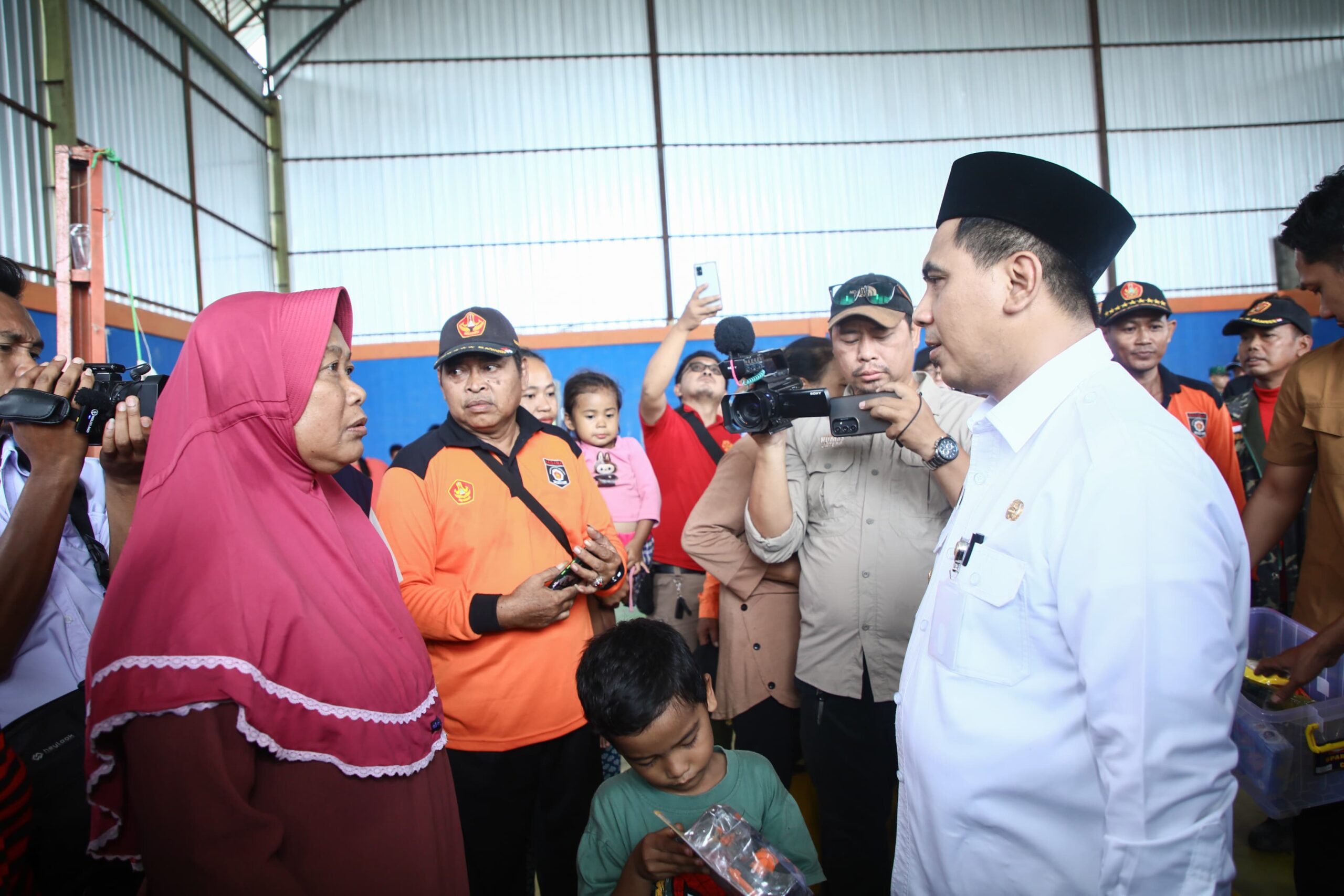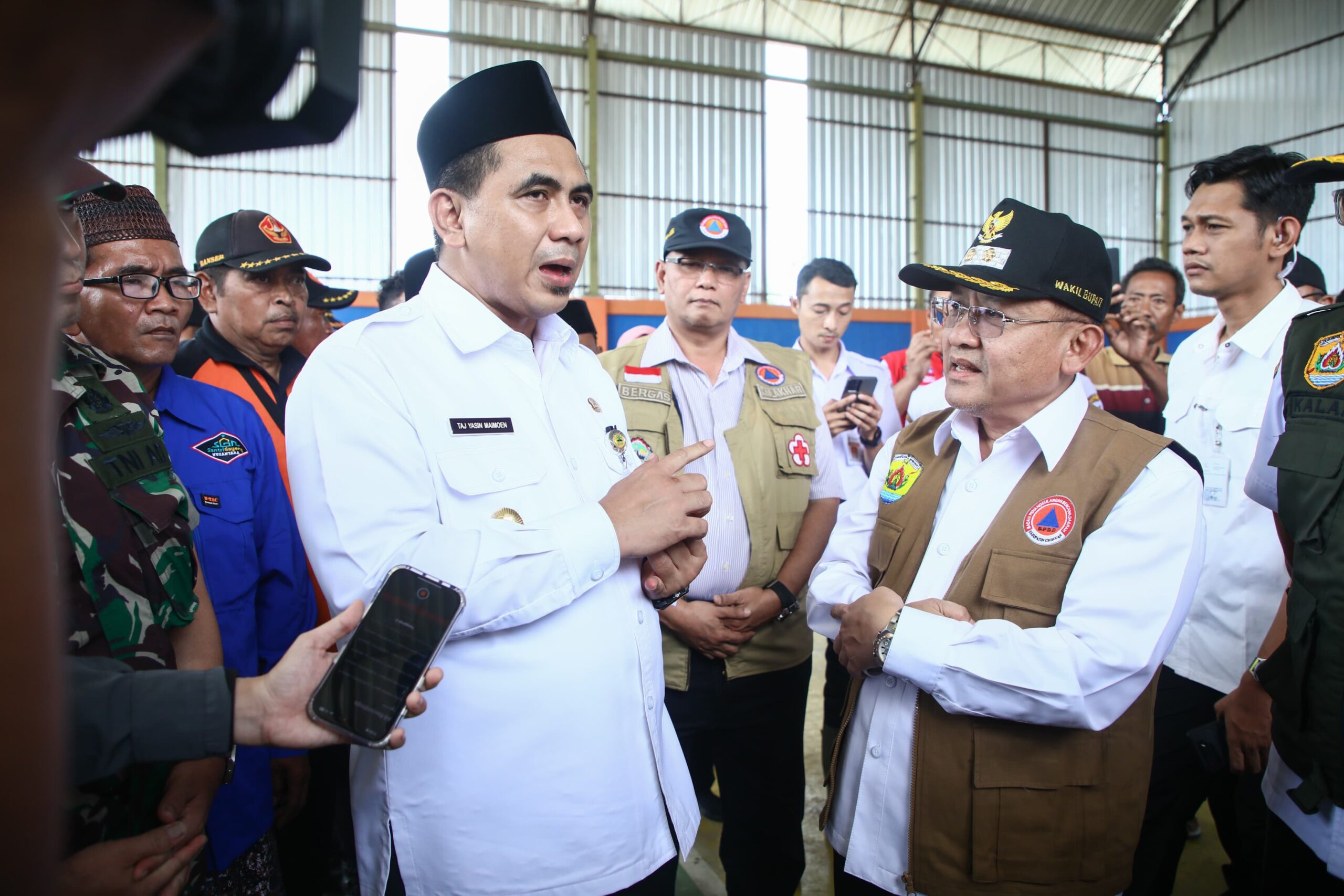 Taj Yasin juga sempat meninjau dapur umum yang dikelola relawan Tagana dan dibantu TNI/Polri. Ia mengecek proses memasak dan ketersediaan bahan pokok, serta memberi semangat kepada para relawan.