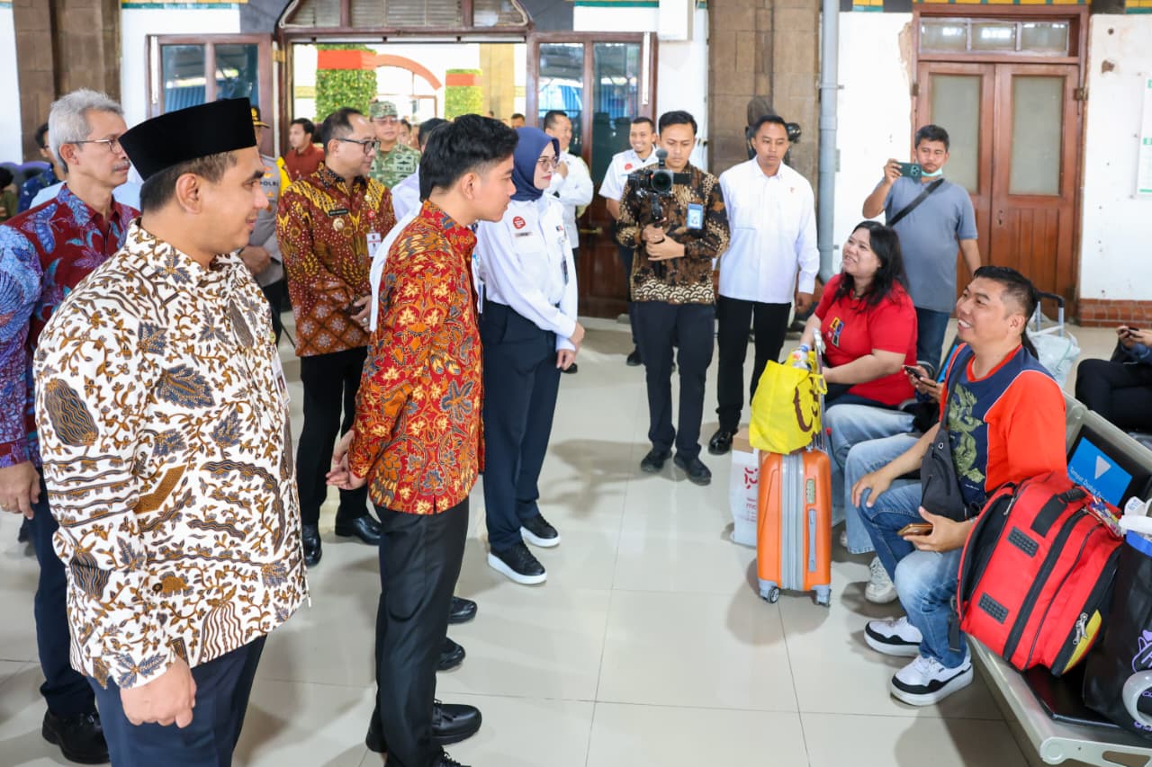 Wakil Gubernur Jawa Tengah Taj Yasin Maimoen (Gis Yasin) mendampingi Wakil Presiden Gibran Rakabuming Raka meninjau pelayanan di Stasiun Tawang Semarang pada saat libur Natal dan tahun baru (Nataru), Kamis, 25 Desember 2025.