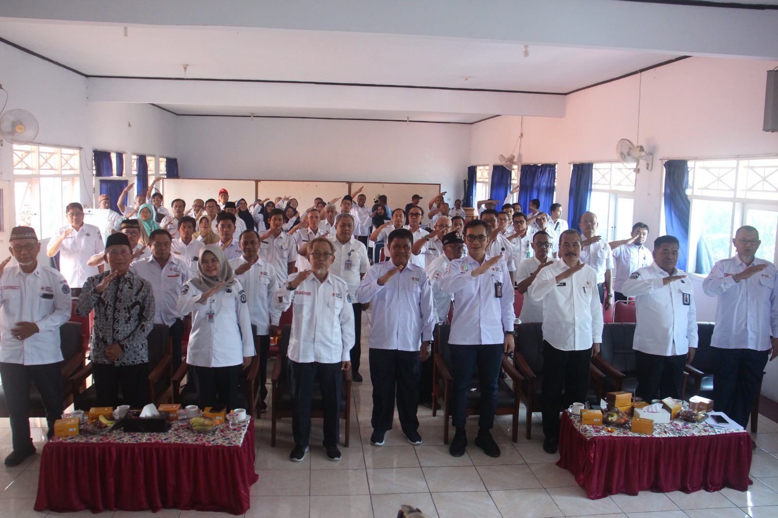 Turut hadir sejumlah pejabat dari berbagai instansi pemerintah terkait, pengurus PMI tingkat kecamatan dan Kabupaten Brebes, dan para relawan PMI.